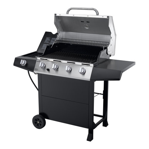 Grill a quick meal for the family or host a barbecue with this propane grill. Includes a blackstone aluminum grill tool set and a blackstone black griddle station cover. Stainless steel burners with top ports can be easily adjusted to deliver high heat or very low temperatures. Put your grilling skills to the test with this 48,000 btu gas grill. Not all gas grills are created equal. Heat thermometer on steel lid goes to 700°f. Stainless steel burners and durable steel side shelves are built to be tough and simple to clean. Charbroil gas grill stainless steel burner support rail 3 burner grills cbbr4. The char broil 4 burner grill is the right one for those who are looking for a powerful and functional barbecue grill having a range of features. Assembly is a little tricky, but a helpful manual will see you through. This versatile grill offers sufficient cooking space whether you are grilling for a few friends or at your next backyard party. Free shipping for many products! 28.5 x 16.5 cooking surface.